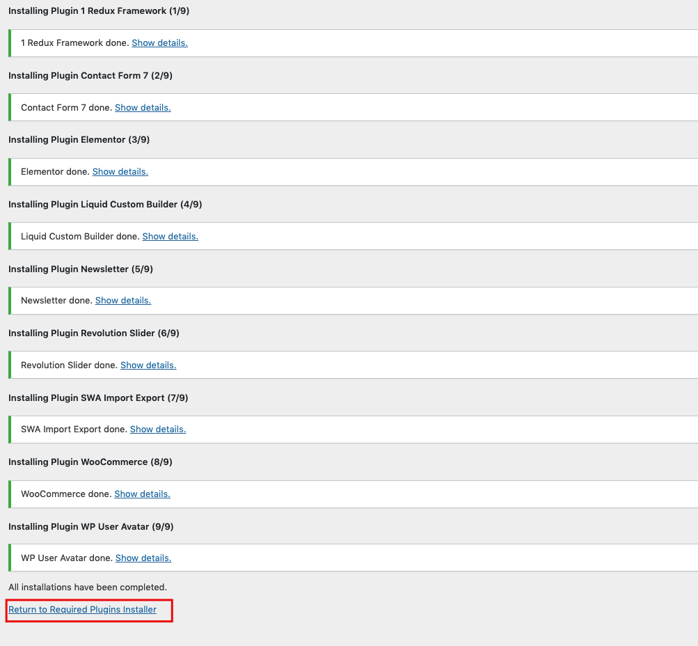 Next, just click the link to Return to Required Plugins Installer.