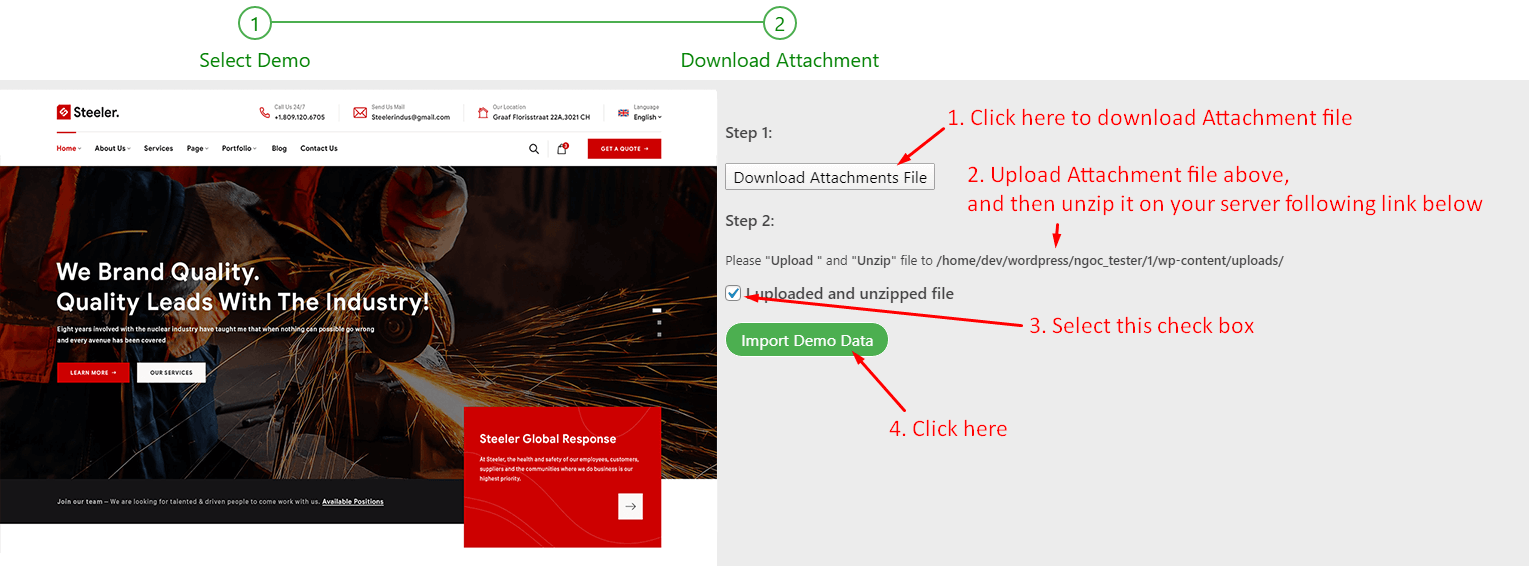 After you have installed the theme successfully, you can optionally import the supplied dummy data in order to get a feel for things. If you're interested in importing the data, please check the Demo Data section below