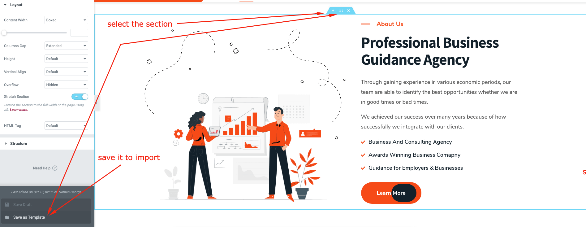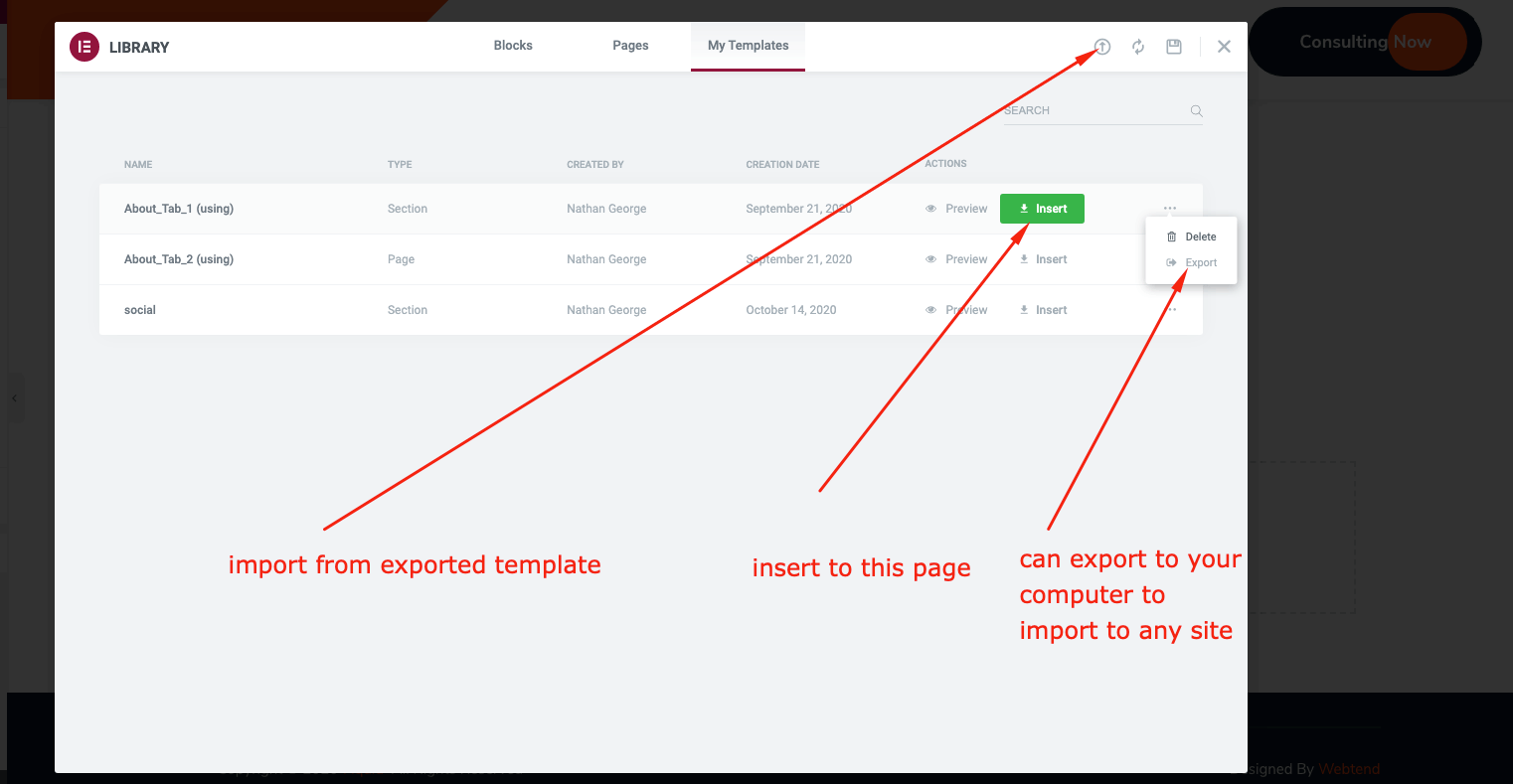 To Export a widget to import to any page, please following these steps: