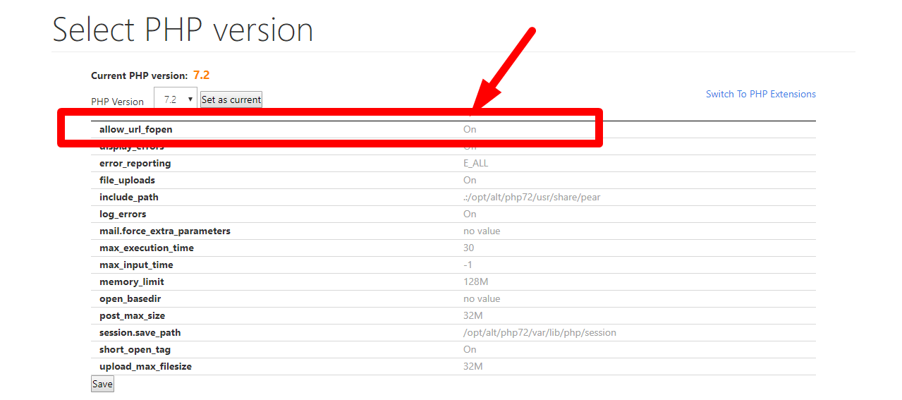 | allow_url_fopen | Supported by the server. |