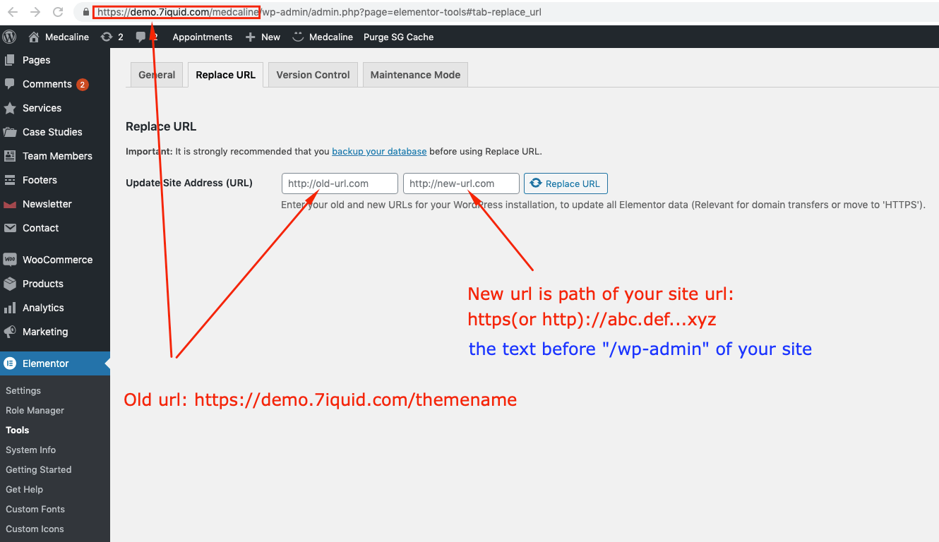 After the demo import is completed, because Elementor save image Urls as a hard link, so when importing data, it will keep image Urls from our demo. So it is important to optimize your website speed is to replace all backlinks from our demo site with the link of your site. Please take 30 seconds to follow these steps: